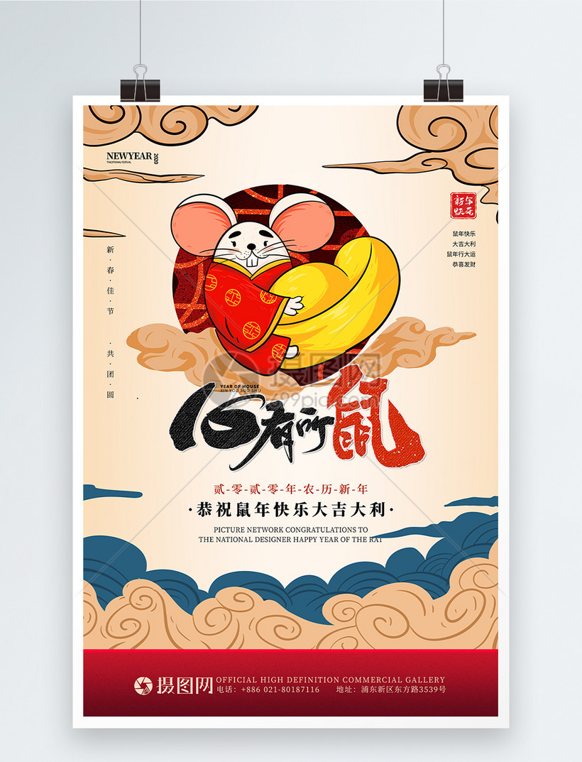 2020年鼠年新年海报模板素材 正版图片401655370 摄图网